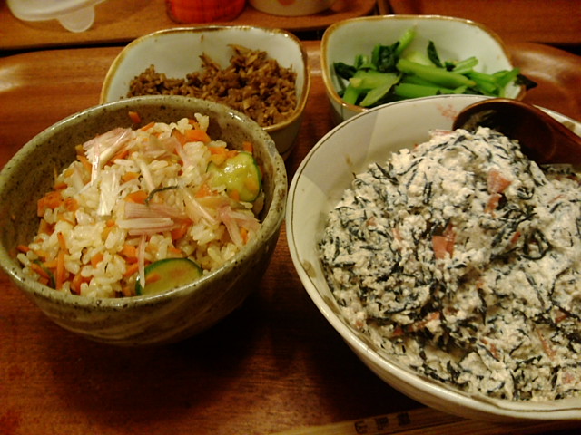 昨日はあな吉さんの二冊目の本のにんじん寿司、izumimirunさんのごぼうのそぼろ、正食協会の初級の白和えと青菜の磯部和えを、全部連れ合いが作ってくれたのですが、どれも美味しい(*⌒▽⌒*)