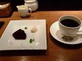 最初にミネストローネ、それからプレートで、チリビーンズ(辛くなくて美味しかったです)とカリフラワーのパスタとベジミートローフとサラダと玄米ごはん、デザートでチョコレートのようなのケーキとたんぽぽコーヒーをいただきました。